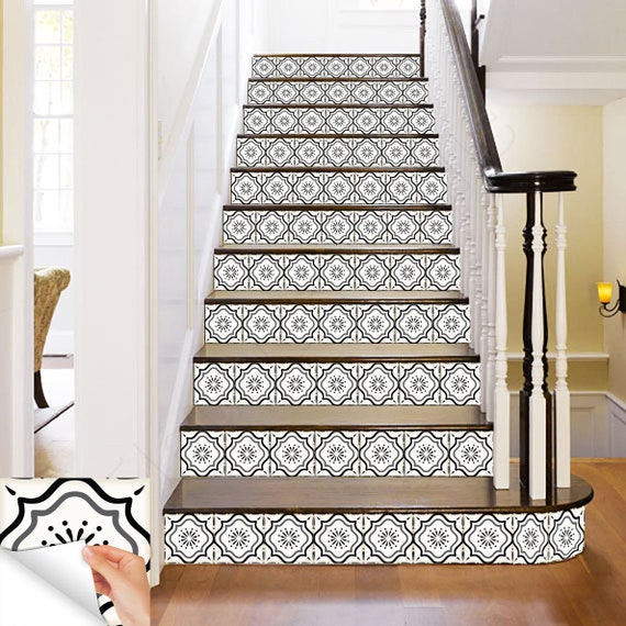 Stairs Sticker,3D Black White Tone Mosaic Pattern Print Vinyl,Home Cafe Bar Stair Tile Decoration 6pcs: Amazon.co.uk: Kitchen & Home